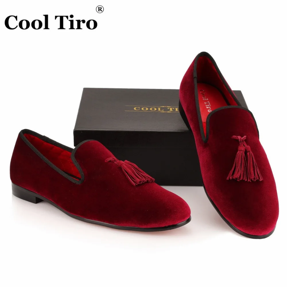 Red velvet shoes mens clearance, COOL TIRO Tassel Loafers Men Velvet clearance