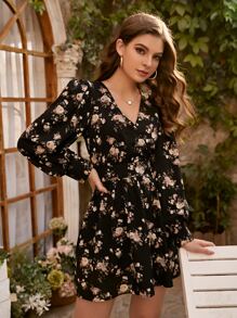 - Cheap Surplice neck floral dress