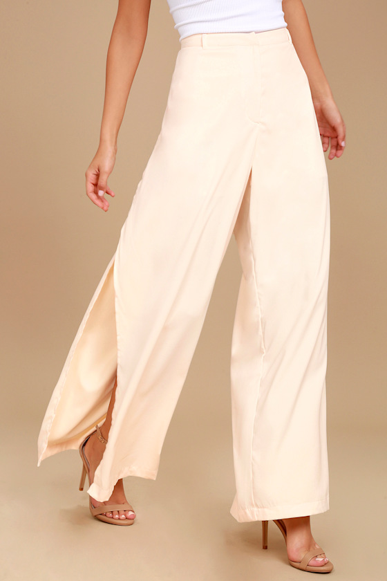 - Cream satin wide leg trousers free shipping