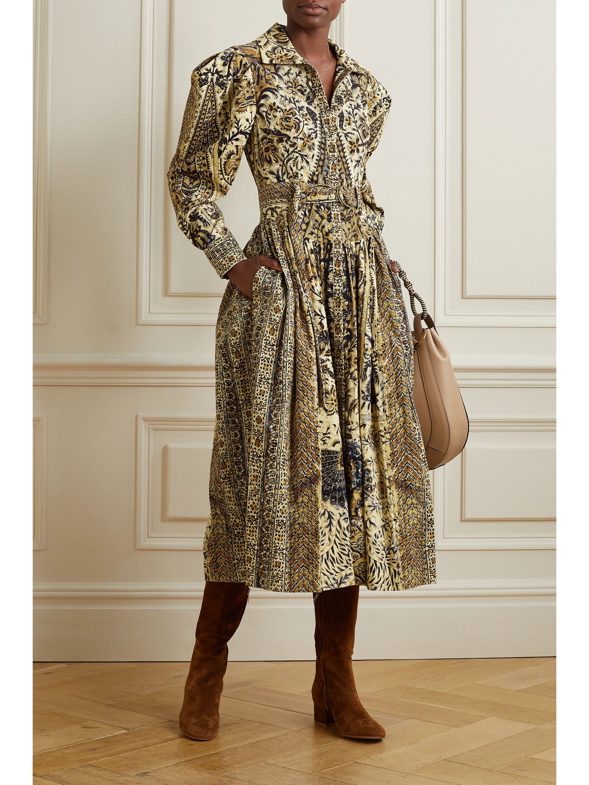 Corduroy midi dress clearance, Blush Eliza gathered silk-corduroy midi clearance