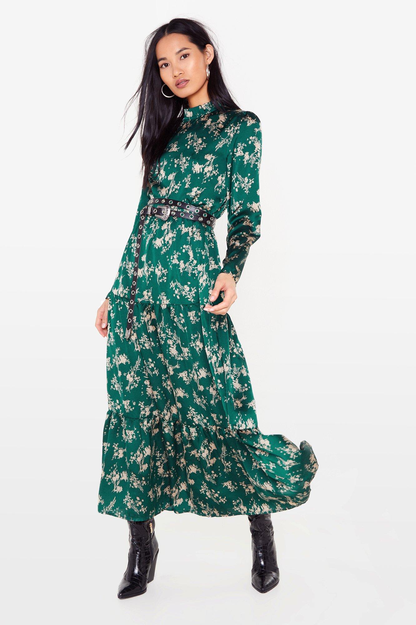 Nasty gal green floral dress clearance, Flower You Doing Slit Midi Dress clearance