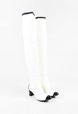 Chanel cream boots clearance, Leather Patent Trim Cap Toe clearance