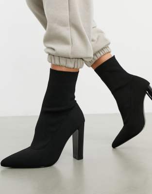 Block sock boots clearance, TRAVEL Black Block Heel Sock Boots by clearance