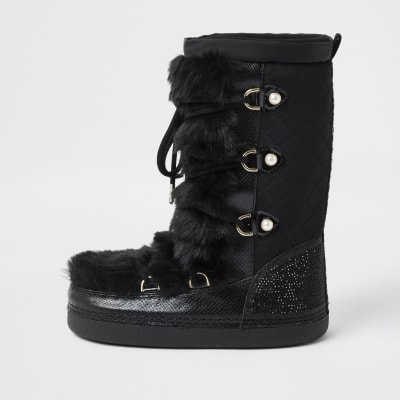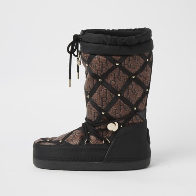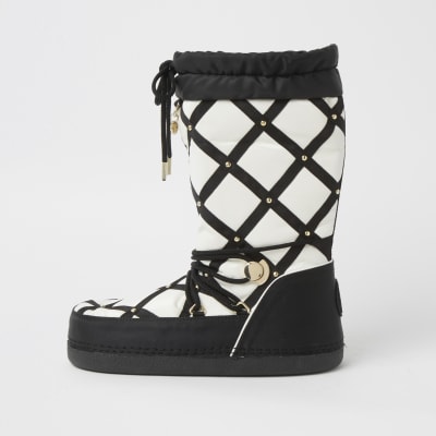 River island winter boots clearance, Black quilted RI monogram snow boots clearance