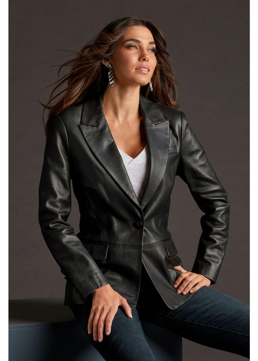 - Black leather blazer ladies sold