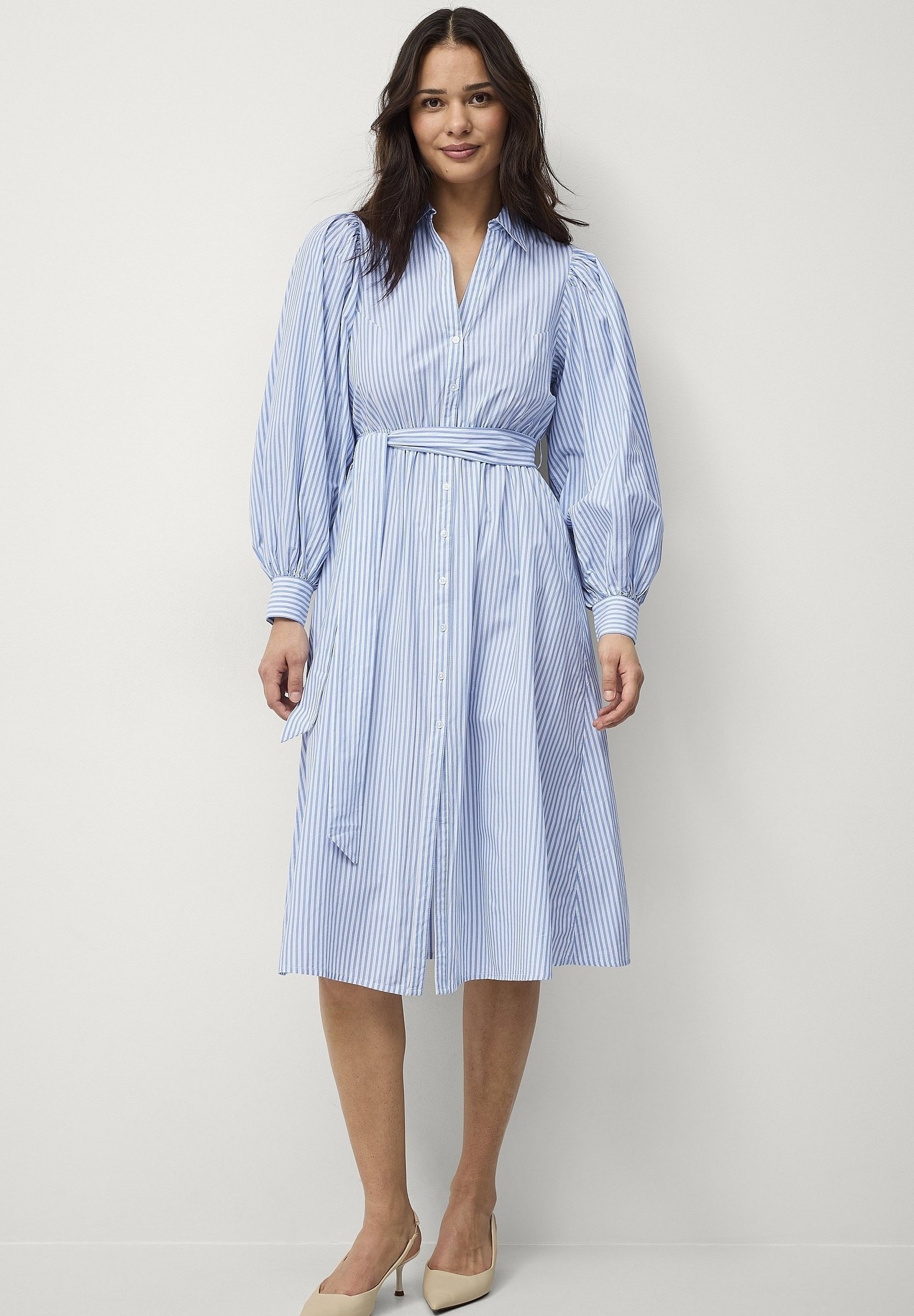 Blau weißes blusenkleid clearance, Nachhaltiges Blusen Kleid Streifen aus Organic Cotton | WOTE clearance