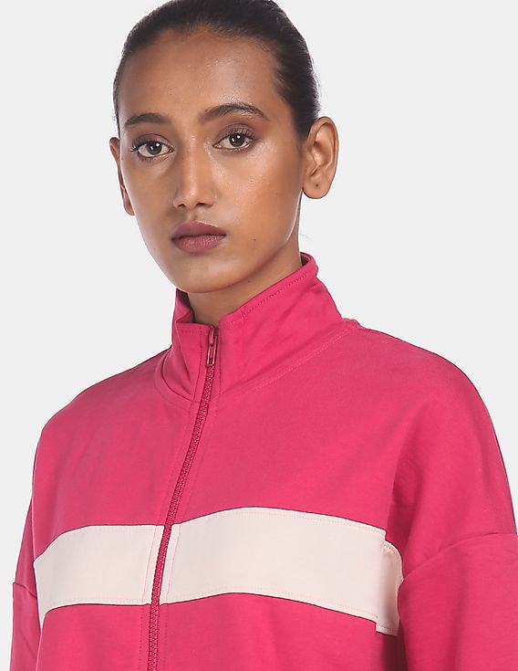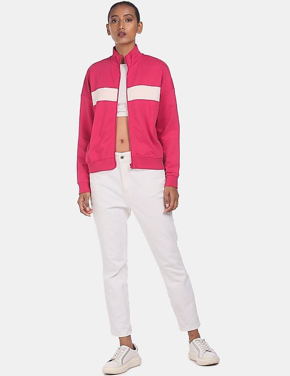 High neck contrast panel sweatshirt clearance, Buy Flying Machine Women Pink High Neck clearance