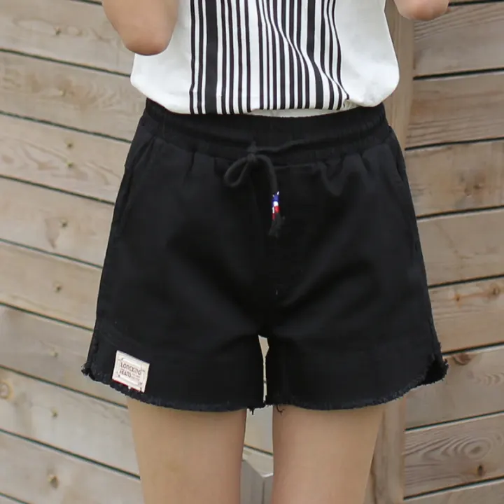 Elastic waist black shorts clearance, White Denim Shorts Female Loose Casual clearance