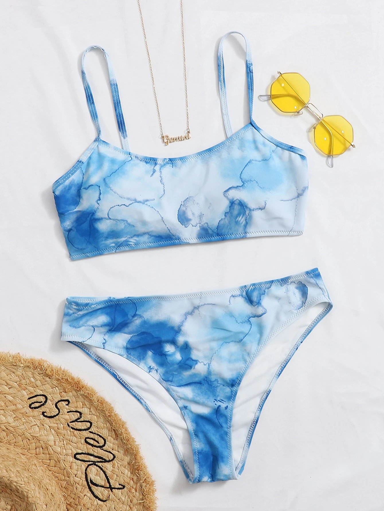 - Cheap Tie dye lace up back bikini set