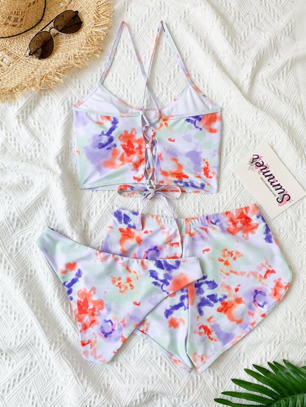 - Shopping Tie dye lace up back bikini set