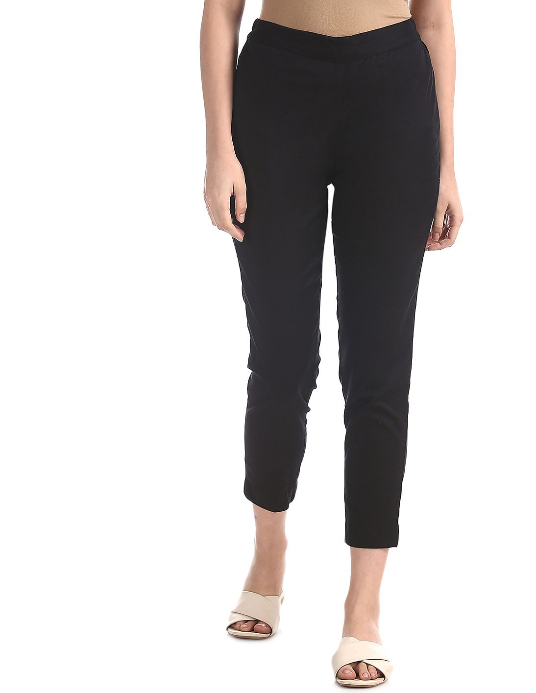 Black cotton stretch pants clearance, Buy Karigari by Unlimited Black Solid clearance