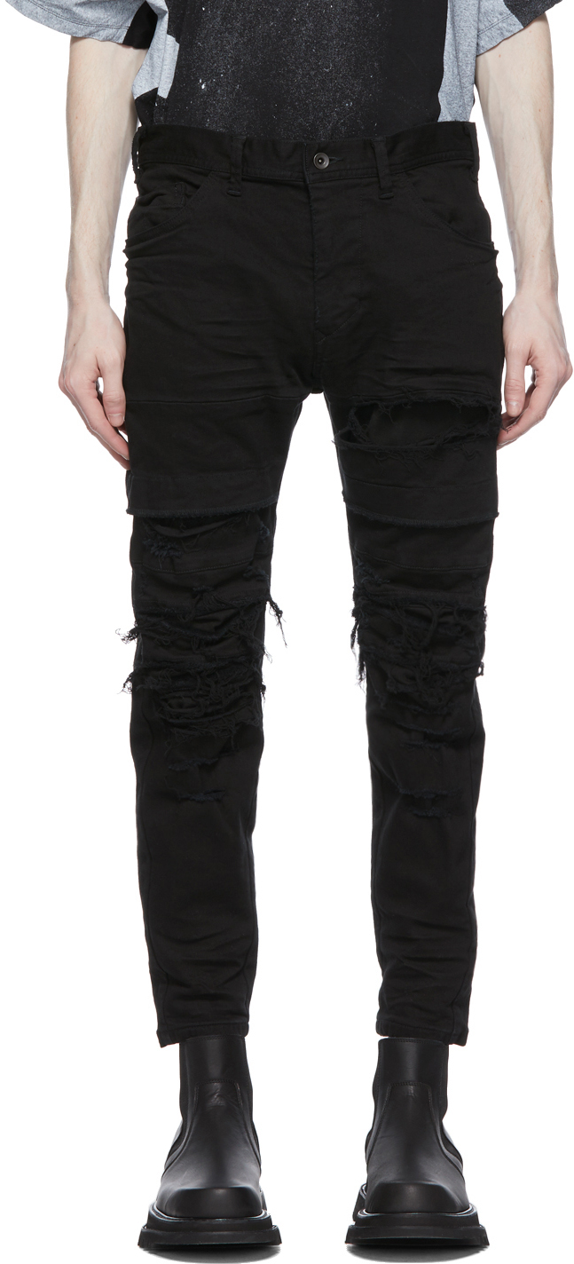 - Black distressed stretch jeans sale