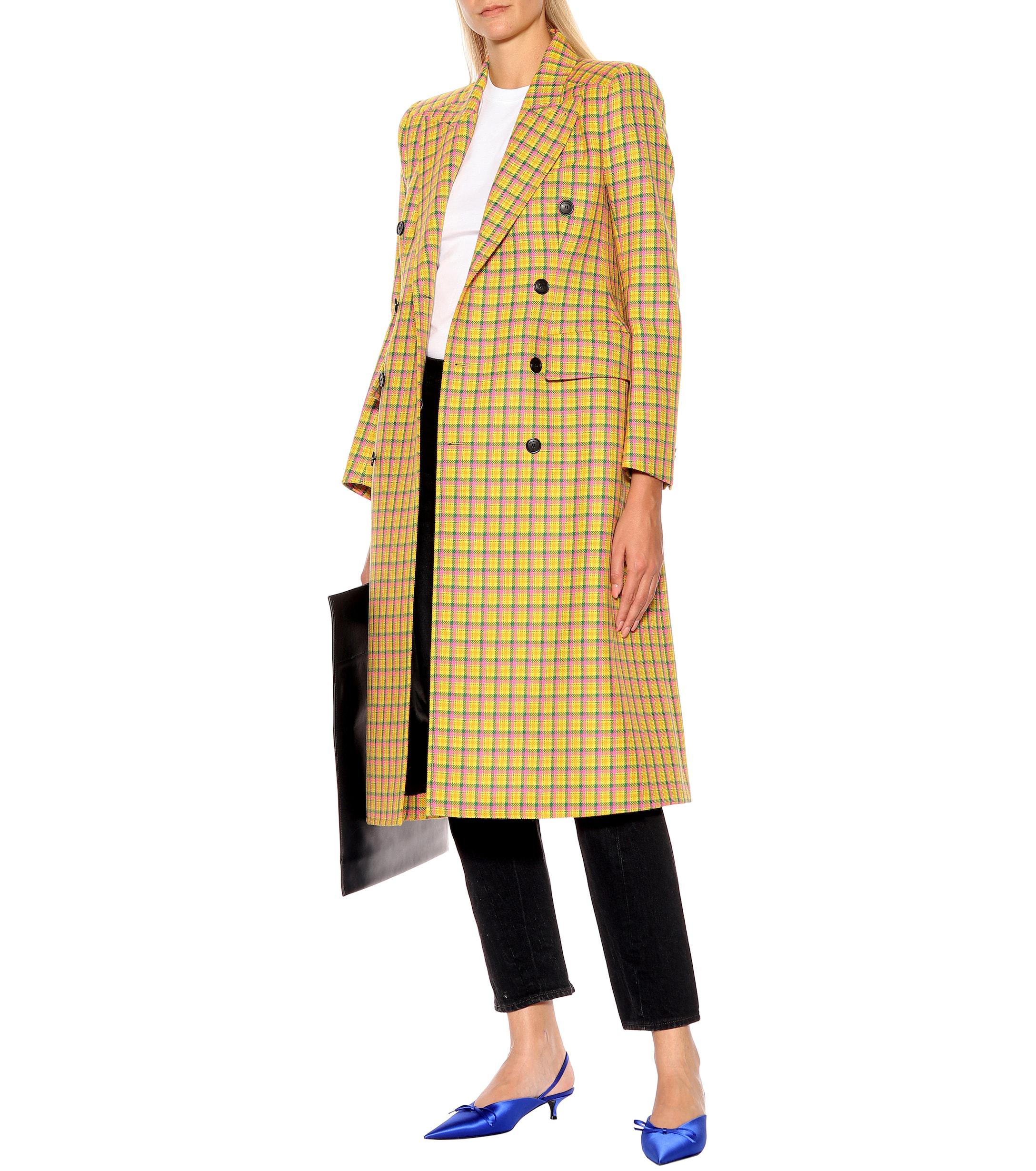 Balenciaga check coat clearance, Balenciaga Checked Wool Coat in Yellow clearance
