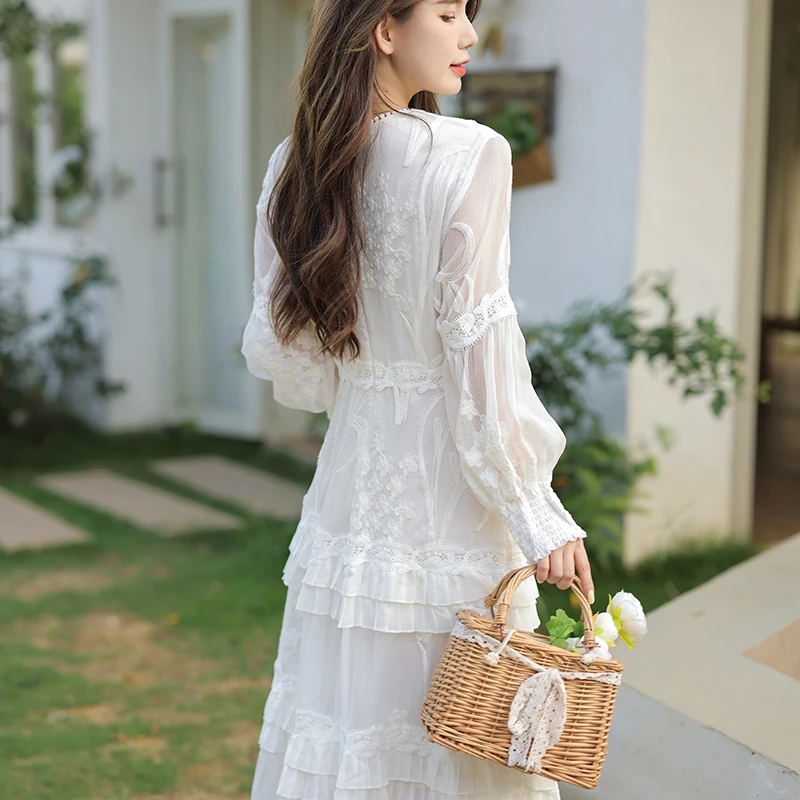 Lange weiße kleider mit spitze clearance, Kleid mit Spitze und Rüschen Sandy Sunrise Weiß - Andżela Online Shop clearance