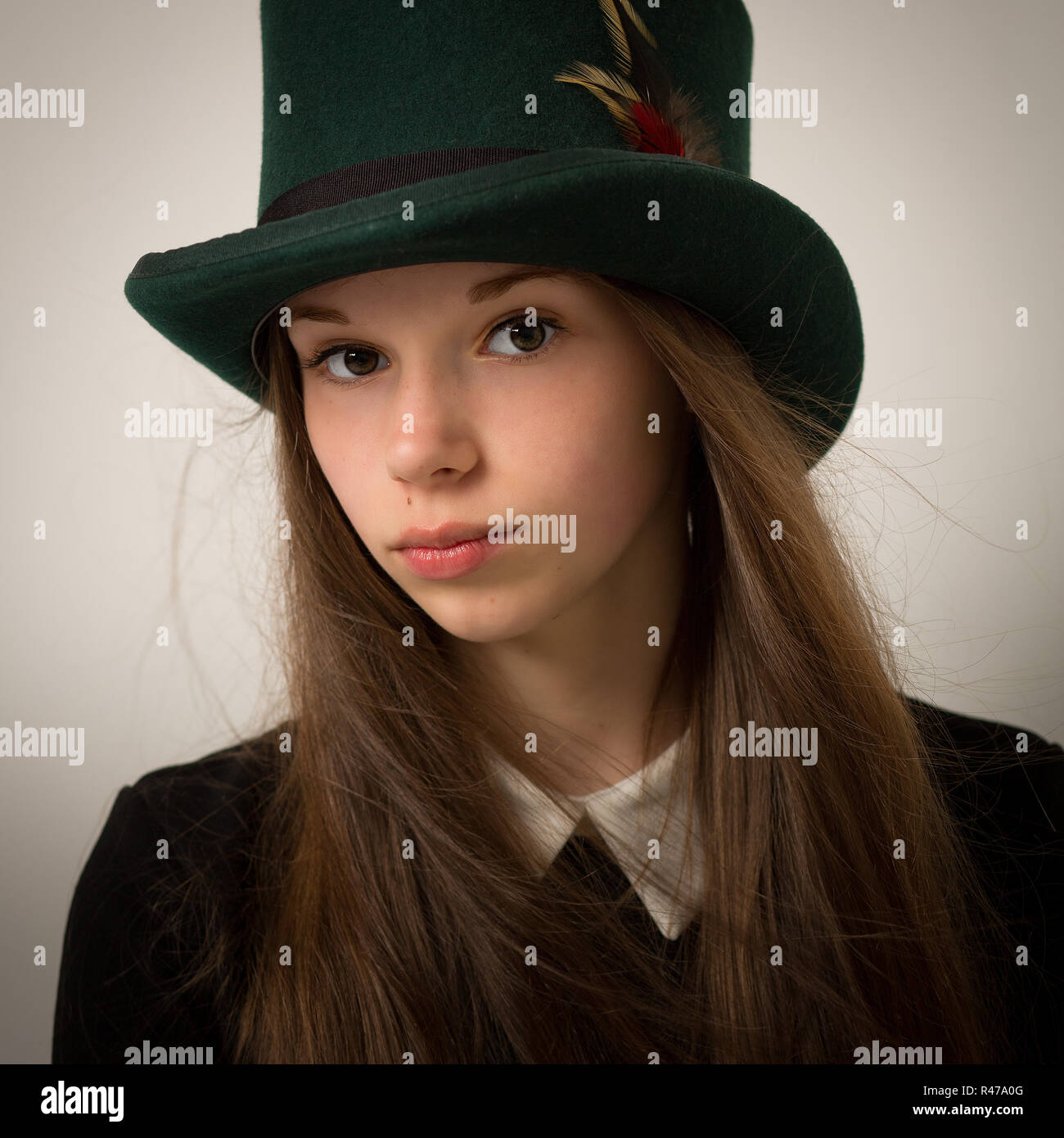 Girl in top hat clearance, Girl in top hat (cylinder) stock photo clearance