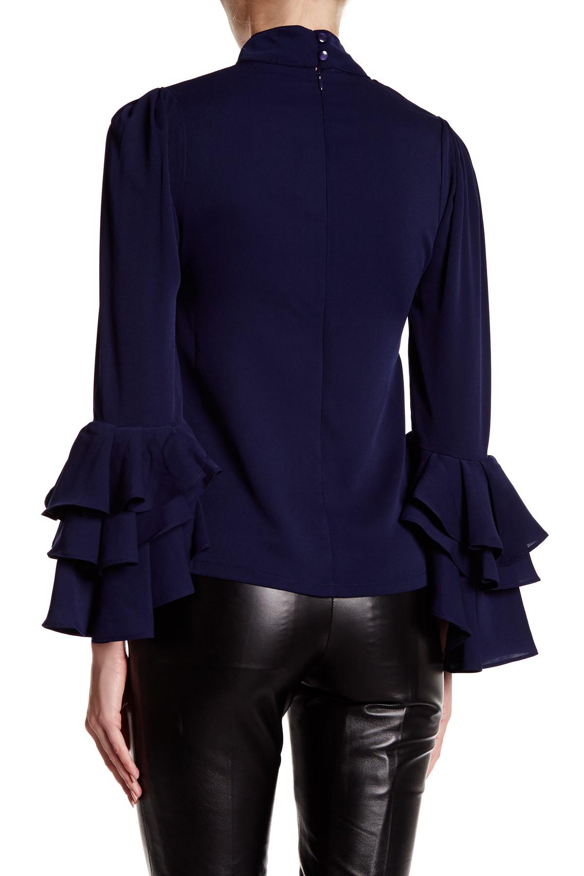 - Navy blue ruffle blouse sale