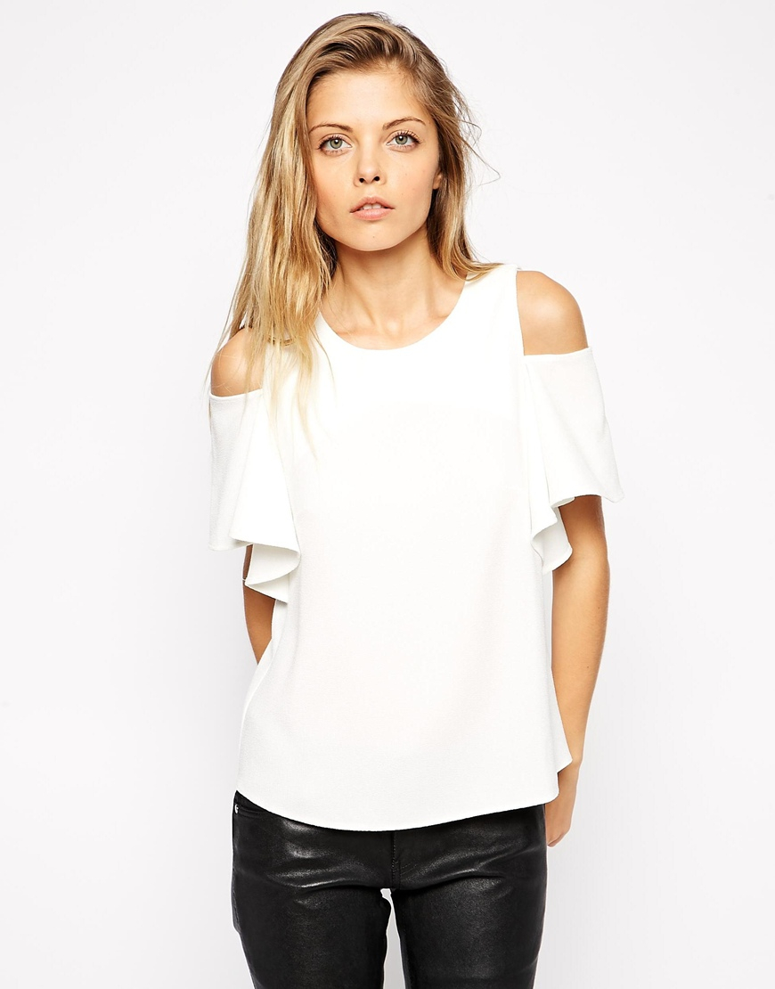 White ruffle cold shoulder top clearance, ASOS Crepe Ruffle Sleeve Cold Shoulder clearance