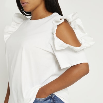 - White ruffle cold shoulder top shop