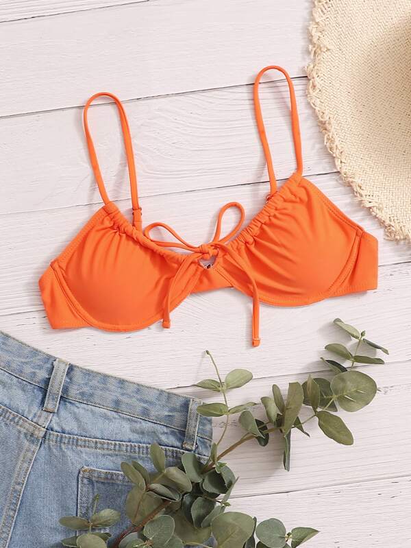 Underwire tie front bikini clearance, Rib Tie Front Underwire Bikini Top | SHEIN USA clearance