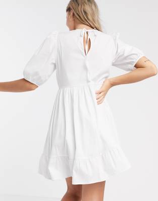 - Cheap New look mini poplin smock dress in white