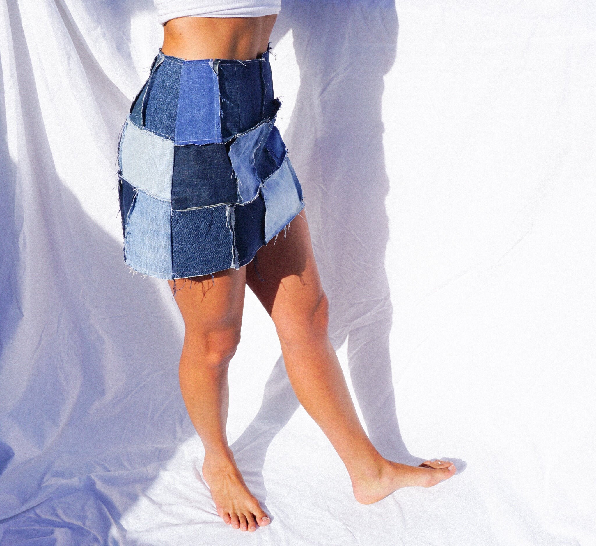 Patchwork jean skirt clearance