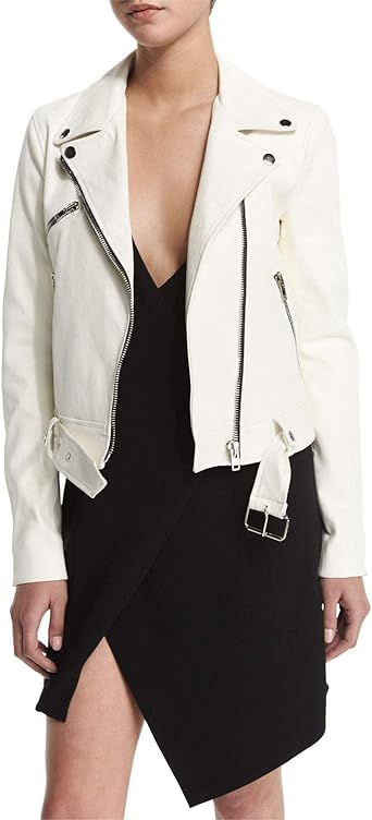 - Cheap White leather moto jacket