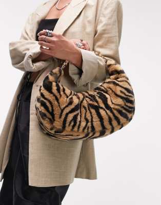 Topshop black fur bag clearance, Topshop shannon faux fur bag in tiger clearance