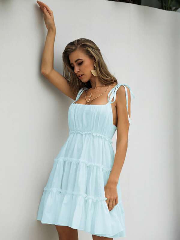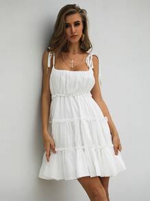 - Missord knot straps frill trim cami dress