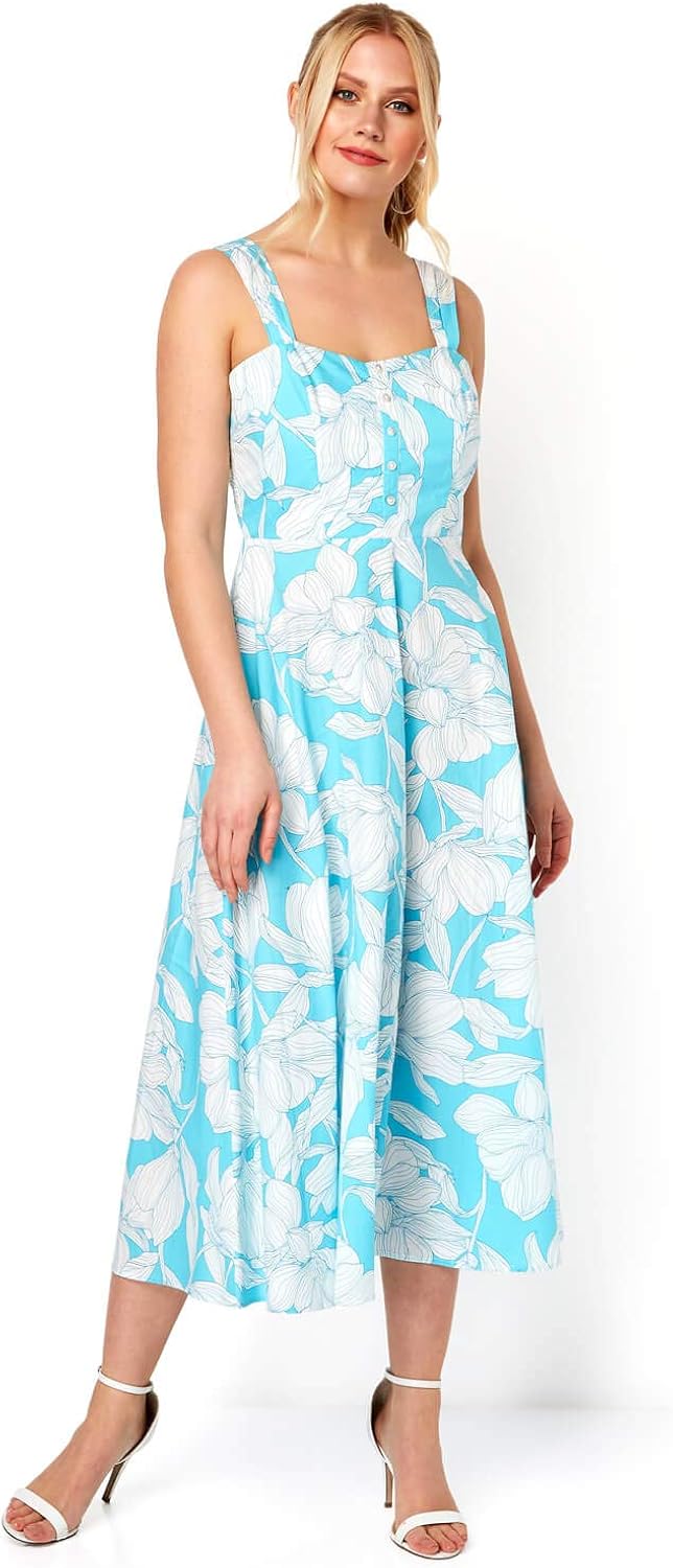Roman sun dresses clearance, Geo Floral Print Strappy Sun Dress in clearance