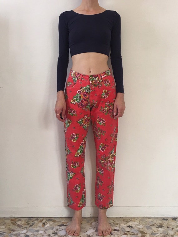 Red floral pants clearance