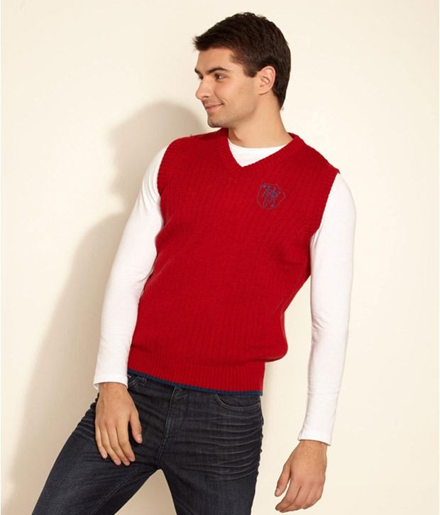 Red half sweater clearance, indiroots Solid V Neck Casual Men Red clearance