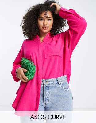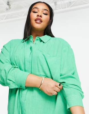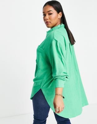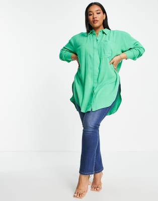 Longline oversized shirt clearance, ASOS Design Curve Longline Oversized Shirt in Textured Green clearance