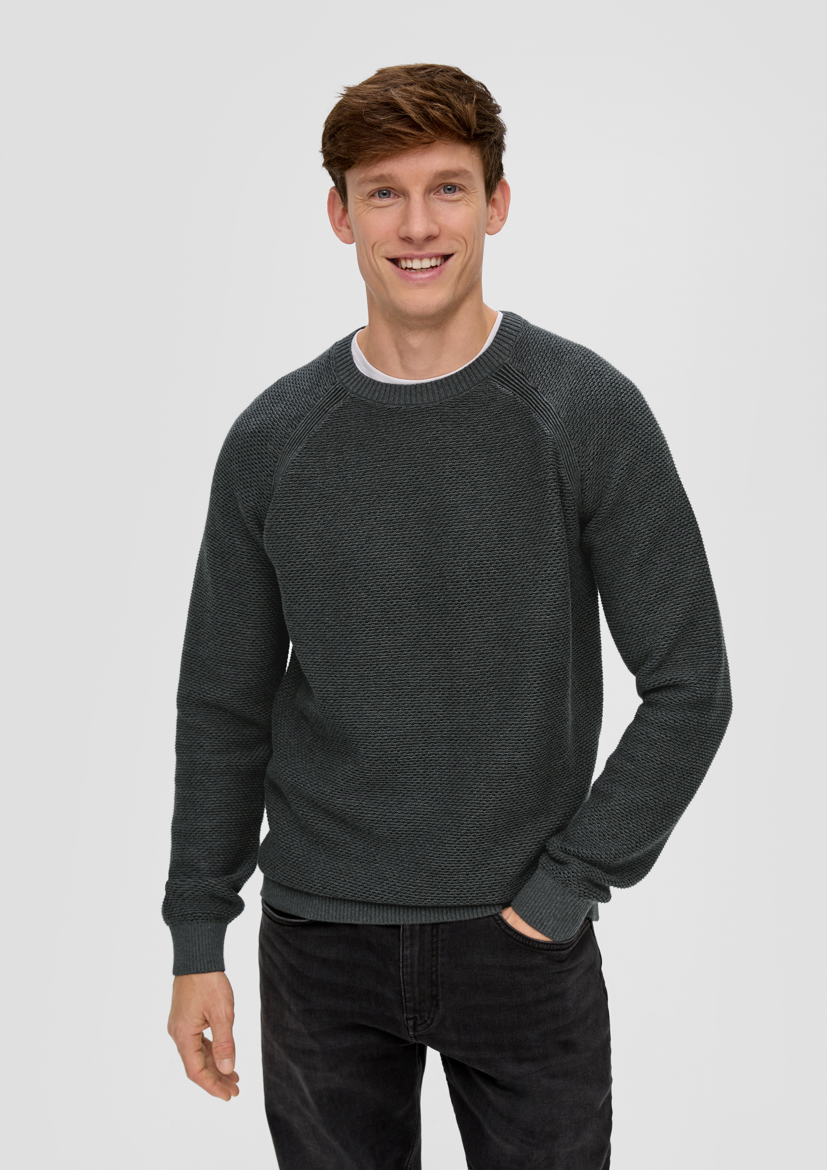 Dunkelgrauer strickpullover clearance, Strickpullover mit Crew Neck - dunkelgrau | s.Oliver clearance