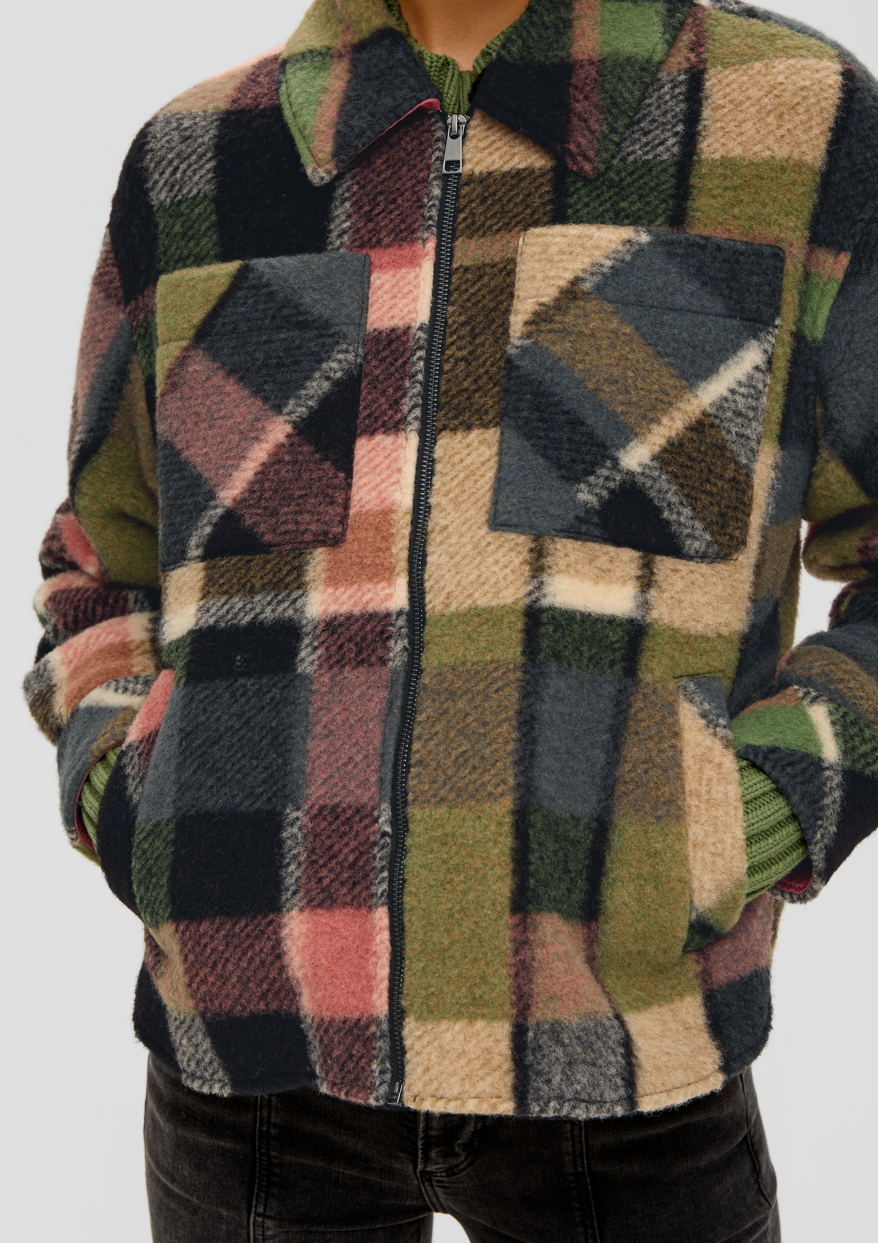 S oliver jacke kariert clearance, Karierte Jacke mit Wolle - tannengrün | s.Oliver clearance