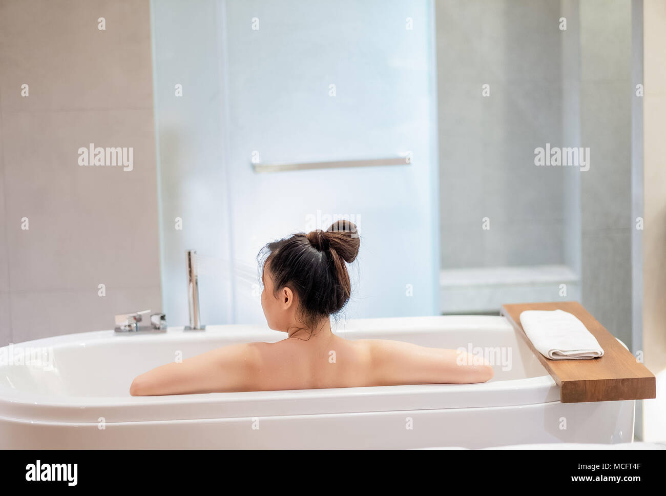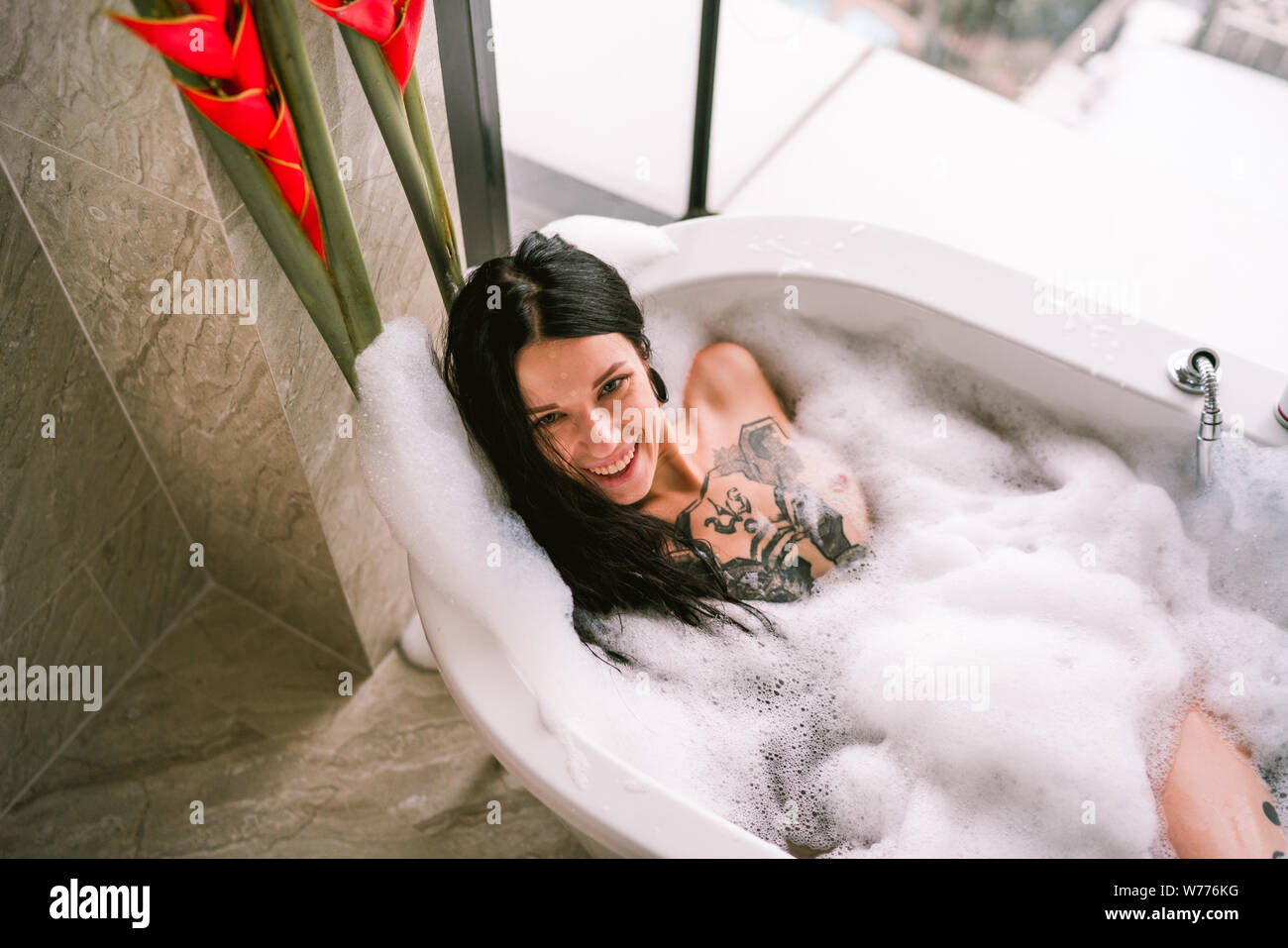 Ladies bathroom bath clearance, PRETTY WOMAN IN BATH TUBE Stock Photo clearance