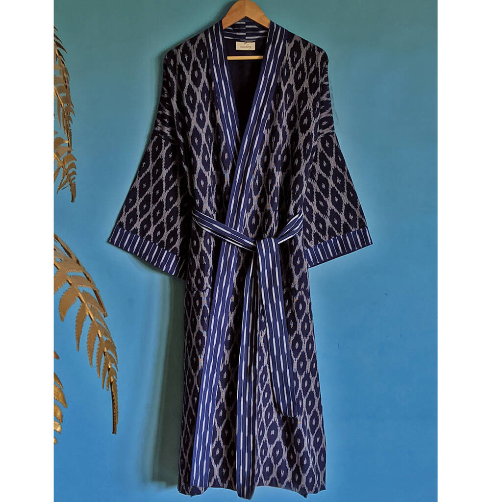 Cotton long kimono clearance, Long Kimono Robe - Floral Block Print clearance