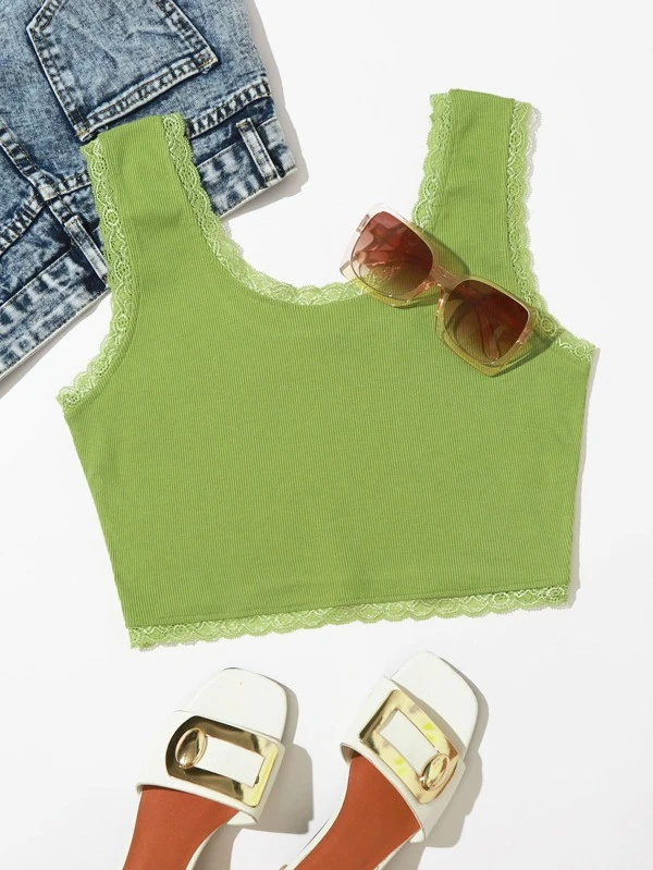 Sleeveless tops shein clearance, Lettuce Hem Rib-knit Crop Tank Top clearance