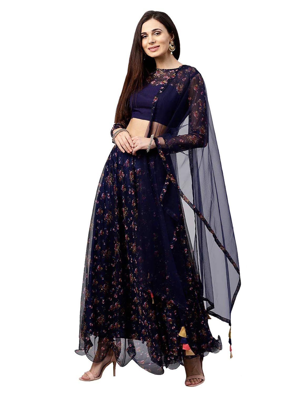 Inddus lehenga choli clearance, Buy Inddus Brown Floral Print Semi clearance