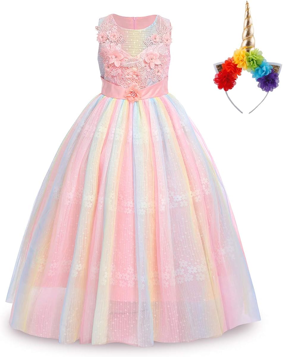 Rainbow unicorn dress for girl clearance, Girls Unicorn Costume Rainbow Dress clearance