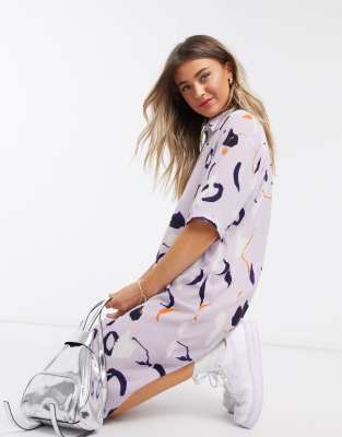 Monki damira shirtdress clearance, Monki Damira art print midi shirt dress clearance