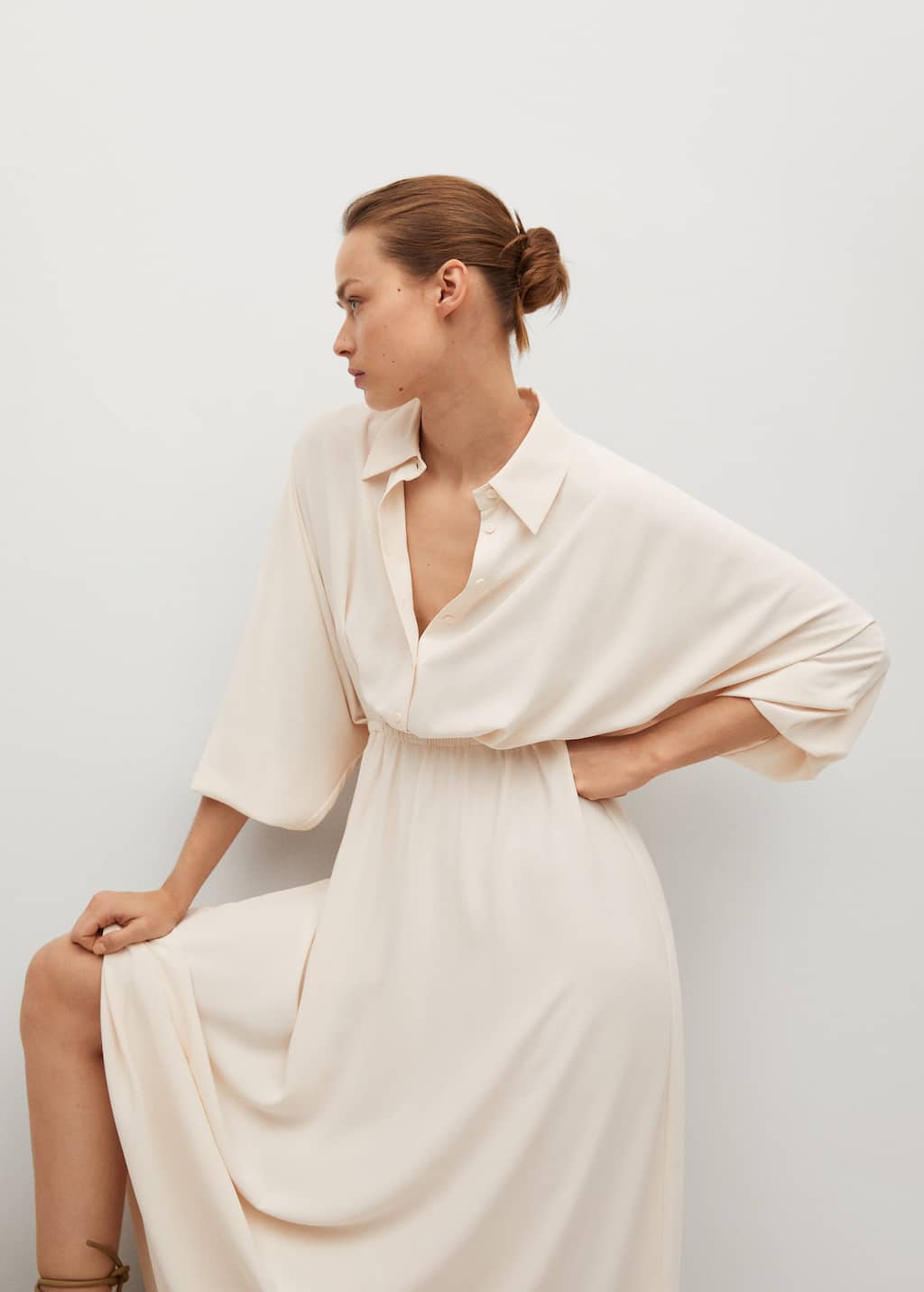 Mango flowy shirt dress clearance, MANGO - Flowy shirt dress ecru clearance