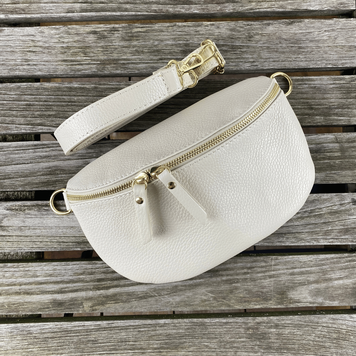 Bauchtasche damen edel clearance, Bauchtasche mit goldenem Verschluss Beige – MAONI clearance