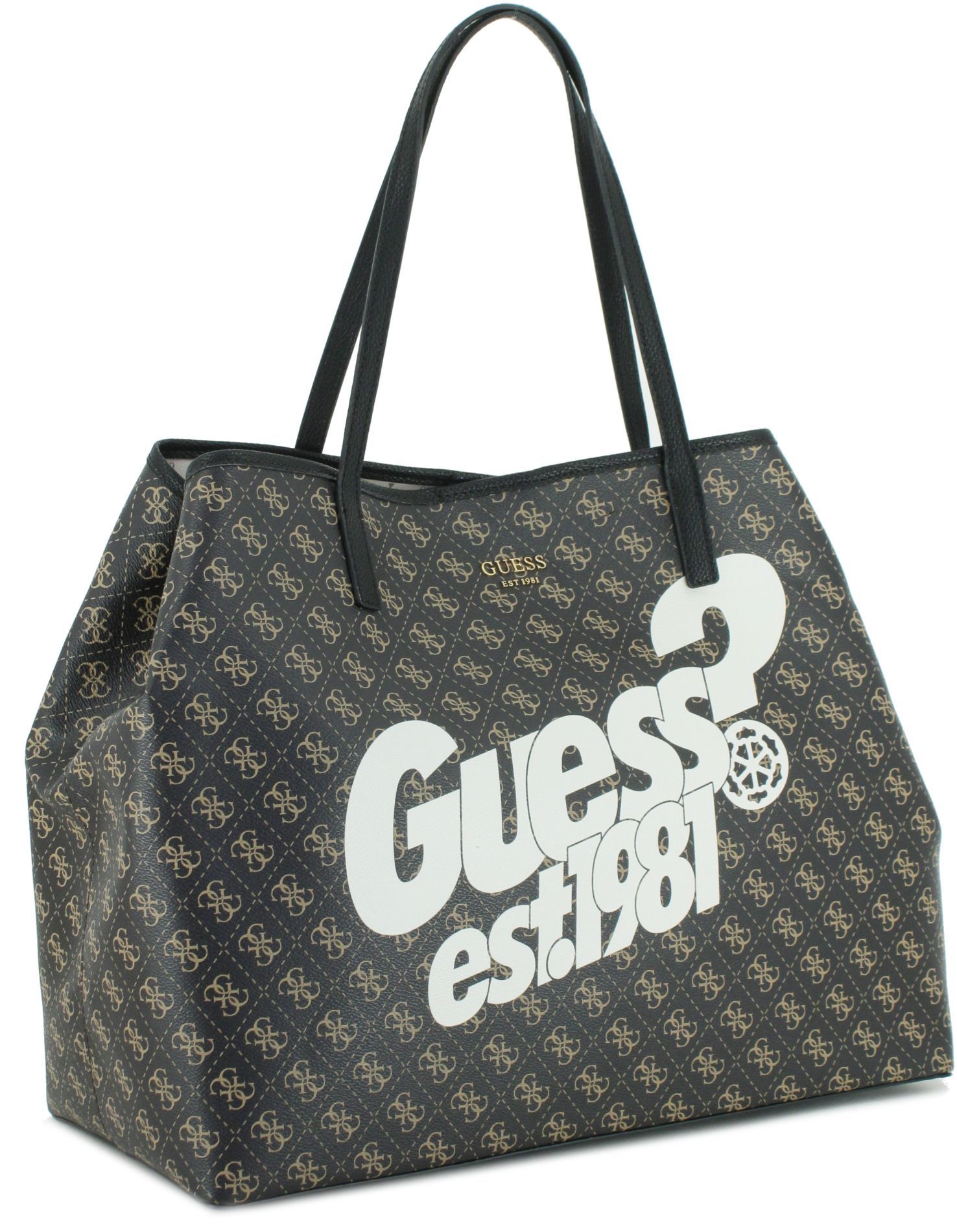 Guess shopper vikky kunst schafspelz clearance, große Shoppertasche Guess Vikky Brown Logo mit auffälligem Print clearance