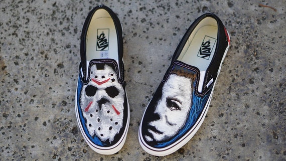Halloween vans slip ons clearance, Halloween Custom Vans Jason Vs Michael clearance