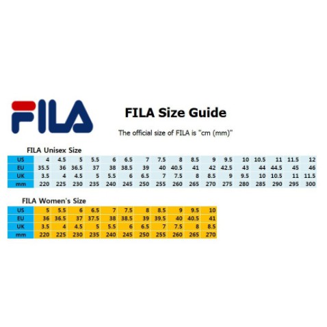 Fila size guide clearance
