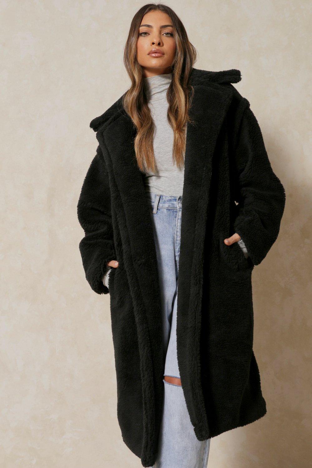 Black long teddy coat clearance, Oversized Teddy Coat | Misspap UK clearance