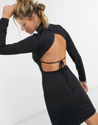 Open back jersey dress clearance, NA-KD Synthetisch Long Sleeve Open Back clearance