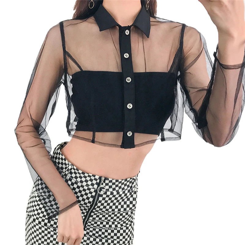- Black net long sleeve top free shipping