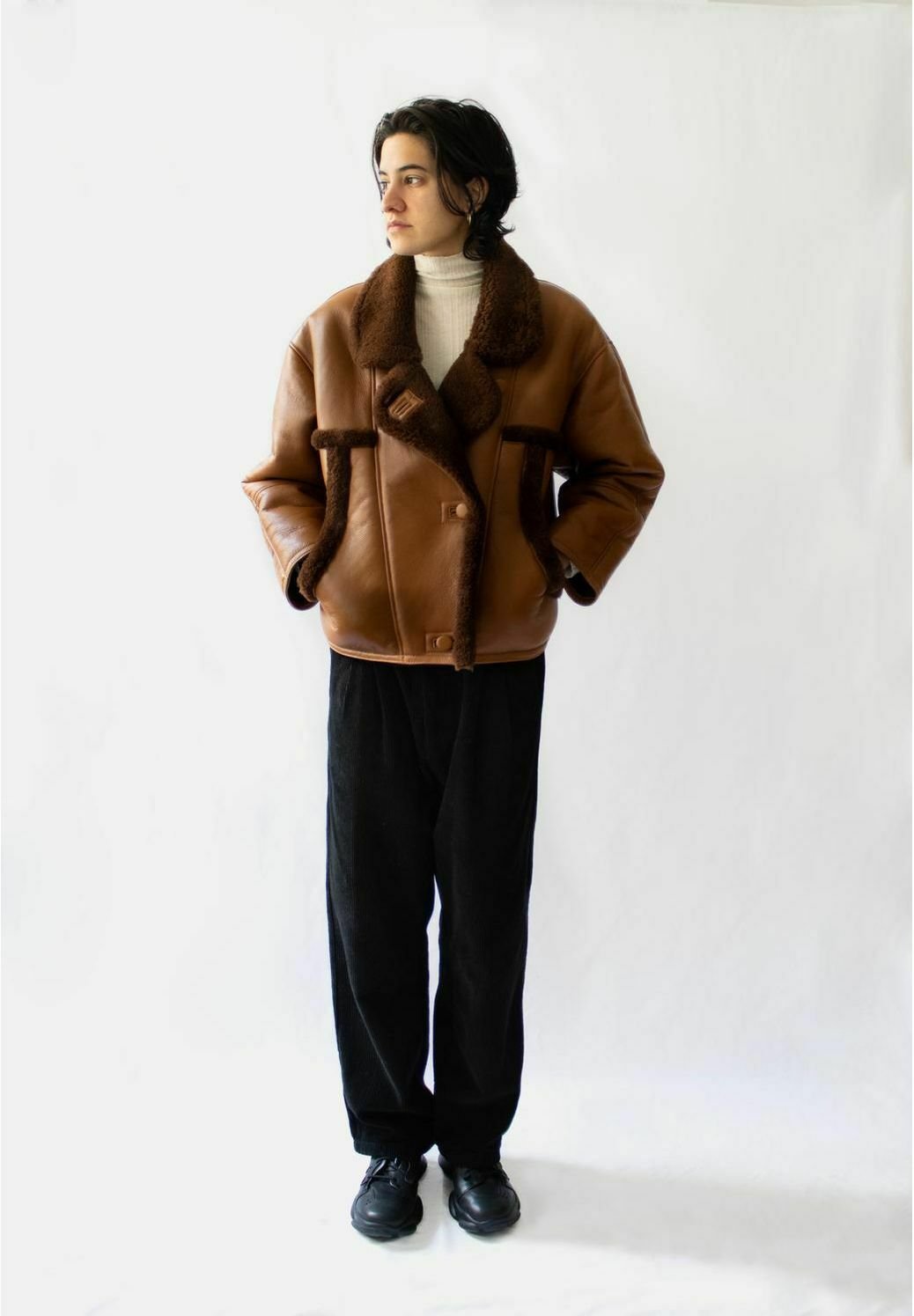 Lammfell lederjacke braun clearance