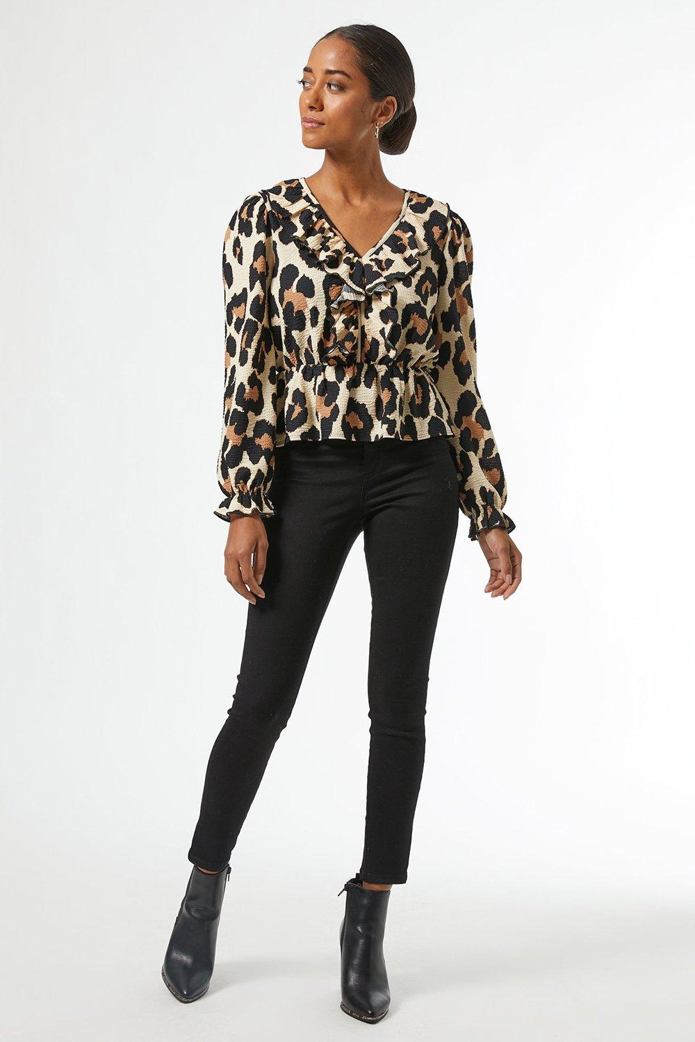 Leopard ruffle top clearance